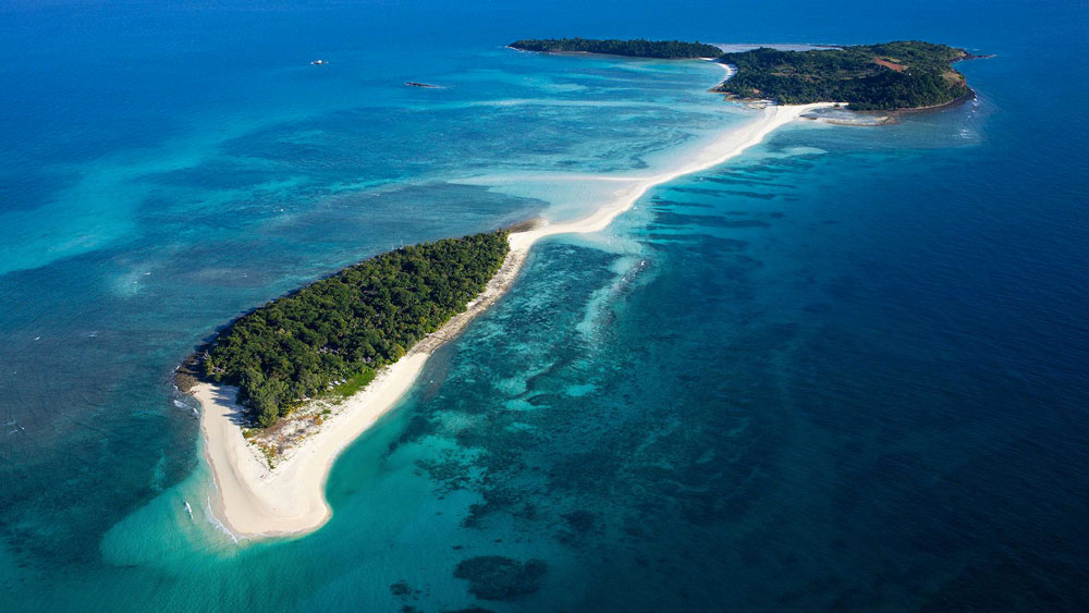 Ogni vacanza nell’arcipelago di Nosy Be non può dirsi completa se non prevede la visita dell’isola di Nosy Iranja. Situata a circa 27 km a Sud di Nosy Be, è formata da due isole: una più grande, Nosy Iranja Be, e una più piccola, Nosy Iranja Kely, collegate fra loro da una lingua di fine sabbia bianca di circa due chilometri che affiora durante la bassa marea. Camminare su questa striscia di sabbia in mezzo al mare aperto dà la sensazione di passeggiare sull’oceano.
