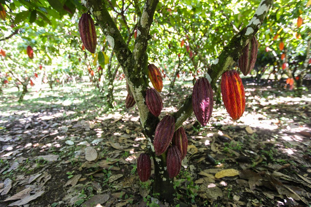 La pianta del cacao è una sempreverde che può superare i dieci metri di altezza e produce fiori bianchi con sfumature rosa. I frutti all’inizio, prima di scurirsi, richiamano la forma del cedro e contengono le fave, protette da una polpa bianca gelatinosa. Il cacao viene ricavato di queste fave che si trovano all’interno dei frutti mediante vari processi che possono essere torrefazione, triturazione e fermentazione. Fu Cristoforo Colombo ad importare dall’America la pianta del cacao; egli, più che dalle proprietà alimentari della pianta, fu colpito dal valore che gli indigeni gli davano, infatti era allora utilizzato come una vera e propria moneta. Il cacao del Madagascar è della varietà criollo ed è considerato a livello mondiale come di grande qualità; la sua coltivazione fu introdott a metà dell’Ottocento dai coloni francesi. Sull’isola di Nosy Be le pintagioni si estendono per circa 4500 ettari.