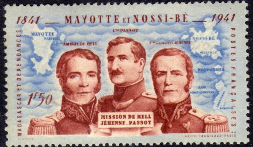 Nel 1838 nella la vicina isola di Bourbon (l’attuale Reunion) viene designato un nuovo Governatore, l’ammiraglio Anne Chrétien Louis de Hell che, l’anno seguente, invia il capitano di marina Pierre Passot alla volta del Madagascar per ricercare un porto militare alternativo a quello di Saint Luois (Mauritius) che era passato sotto il protettorato della Gran Bretagna. Passot, a bordo della Prevoyante approda così a Nosy Be, nella rada più sicura dell’isola, dove vi installa un avamposto militare battezzato Hell-Ville in onore del Governatore di Bourbon. Dopo la ritirata e sempre sotto la minaccia dei Merina, la regina Tsiomeko e l’elite Sakalava si rivolgono al Sultano di Zanzibar prima e alle autorità delle Mauritius per chiedere protezione, ma questa fu garantita loro solo per un periodo molto limtato. La situazione era duque propizia per la Francia, che risponde positivamente alla nuova richiesta di tutela da parte dei Sakalava e, senza grandi complimenti, nel 1841 prende ufficialmente possesso di Nosy Be e Nosy Komba, a seguito della nuova spedizione del Capitano Passot a bordo della Colibrì. Per l’annessione del Madagascar si dovrà attendere fino al 1896, a seguito della presa di Antananarivo da parte delle truppe francesi. Nosy Be è stata duque colonia francese ben 55 anni prima del resto del Paese.