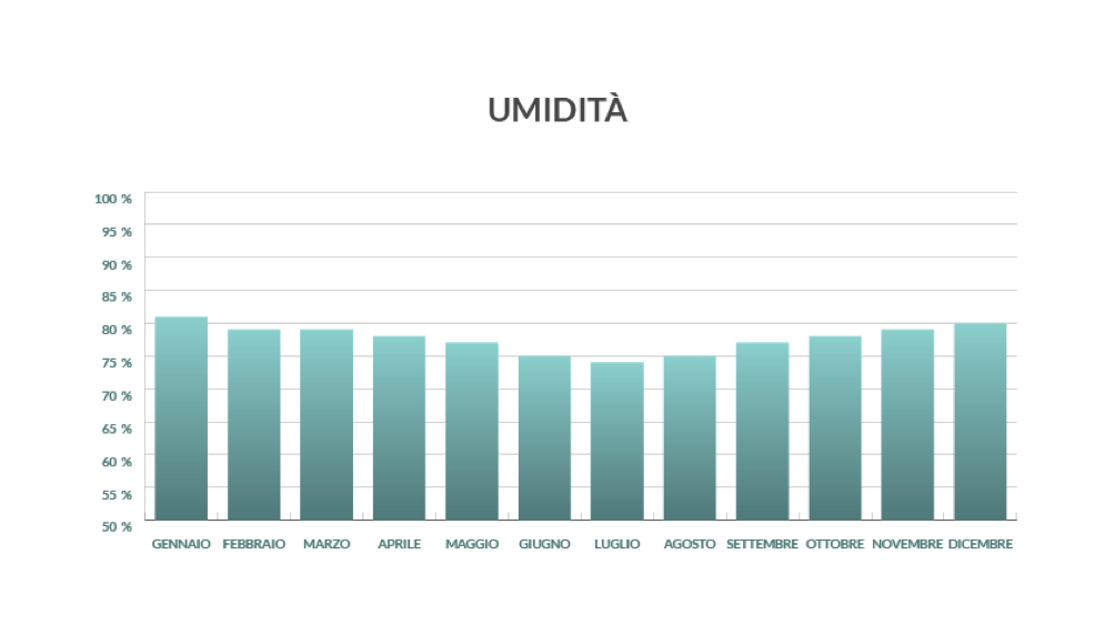 Qui di seguito riportiamo alcune statistiche relative alle variazioni di temperatura dell’aria, umidità e precipitazioni.